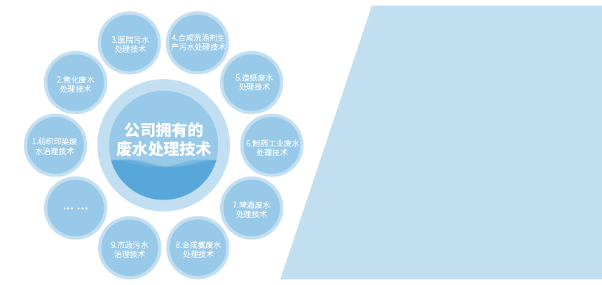 公司在污水處理方面擁有MBR、MBBR、SBR、A2/O、厭氧發(fā)酵、高級(jí)氧化、膜分離等核心技術(shù),為客戶提供工業(yè)、市政、生活、農(nóng)業(yè)等各種污水治理解決方案,以達(dá)到排放標(biāo)準(zhǔn)或再次使用的水質(zhì)要求。