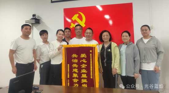 2024年5月29日武漢市武昌區(qū)水果湖街張家灣社區(qū)黨支部高書記及居民代表一行來到光谷藍(lán)焰總部贈(zèng)送感謝錦旗,并代表湖北省慈善總會(huì)送來感謝信,以感謝光谷藍(lán)焰的善行義舉和為社區(qū)幸福家園建設(shè)作出的貢獻(xiàn)。